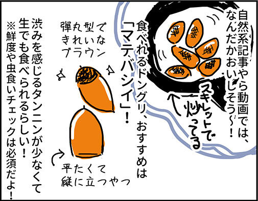こどものころからどんぐり食べれるらしい、という知識だけあって実際はやったことなく大人になってから食べれた!