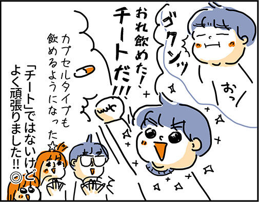 どうにもコツがつかめず、どう教えてあげればわかりやすいかもわからず、小児科の先生の動画も見せたが、3年生でもなかなか飲めない…