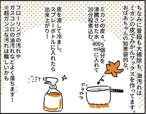みかんの皮はお風呂に入れたりみかんワックススプレー作ったりとだいたい活用するので、