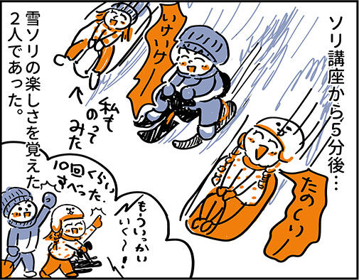 よかった~せっかく借りたバイク型ソリも最初怖がってに乗らずに返すところでした…!