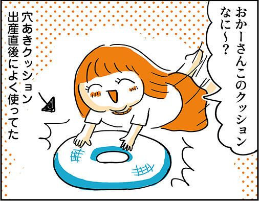 押し入れから穴あきクッションを出したアカゴ