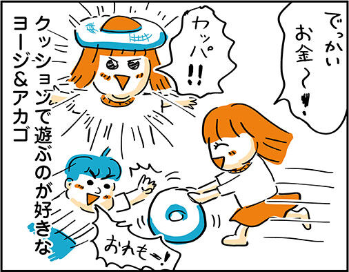 一見平和な遊びの風景ですが、この後クッションを取り合いケンカするヨージとアカゴであった…