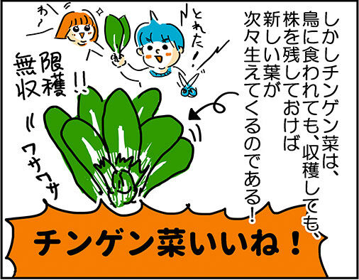 虫食いはしやすいから防虫スプレーはちょいちょいかけて、日当たりのよいベランダで順調に育つチンゲン菜たち。