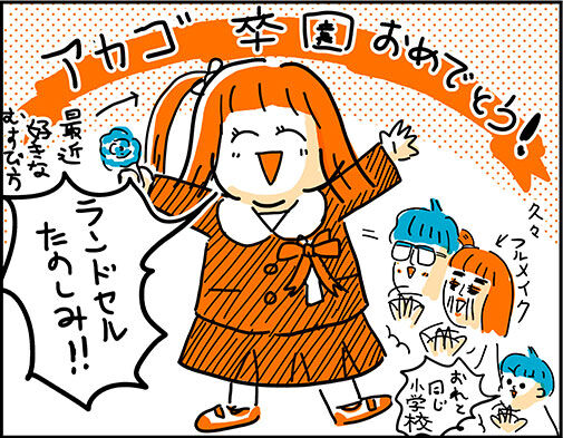 1コマ劇場 アカゴ卒園 2025年03月22日 アカゴちゃん、ついに卒園しました!長かったような早いような、あっという間の幼稚園生活。楽しい思い出いっぱいできたかな~?アカゴは行きしぶりもなく、遊んで~!とわりと突っ込んでいくタイプでした。(むしろ私がママさんたちに突っ込んでいけないタイプ)まだまだブログに書き足りないエピソードだらけだけどクロニクルとしてアップしていきたいです。さてさて春休み、は小学校準備の道具に名前つけ祭りじゃ~!!!小学生になるアカゴもよろしくお願いします! OKAME 「アカゴ幼稚園」カテゴリの最新記事 < 前の記事次の記事 > コメント コメントフォーム 名前 コメント 記事の評価 リセット リセット 顔 星 情報を記憶 コメントを投稿する