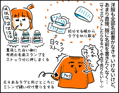 洋服にも名前書かなきゃだけど、タグでも直接名前を書きたくなくて、