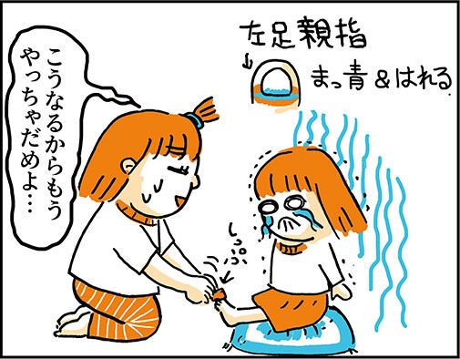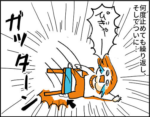 倒れた瞬間を見てなかったけど、どうも足を挟んだようです…涙
