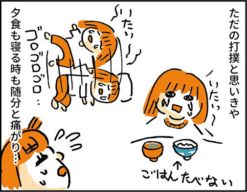 もう夕飯食前だったのでとりあえず湿布貼っておけばまぁ大丈夫だろうと思ったのですが…