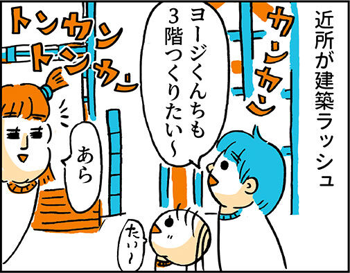 周りのあたらしいおうちを見て自分のお部屋が欲しくなった模様。