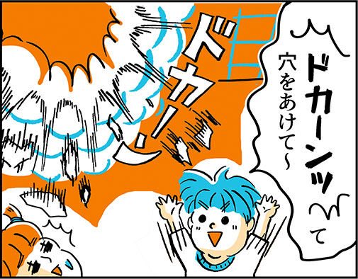ヨージくんは、おそらく戦隊ヒーローとかの戦闘シーンの影響で、爆発とかが好きで…(物騒な!)