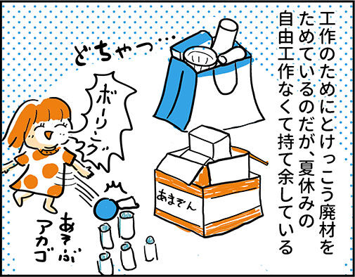 アカゴちゃんは割と普段から廃材工作をしますがヨージはたいしてやらない。個性~。