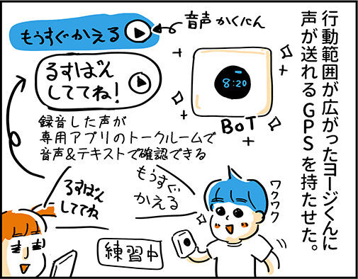 他の子もGPSやスマホとか持ってる子もいるけど、スマホは一日中見ちゃいそうだし…ということで、試しにヨージだけ見守り用メッセージ送信機能付きGPSを持たせた。