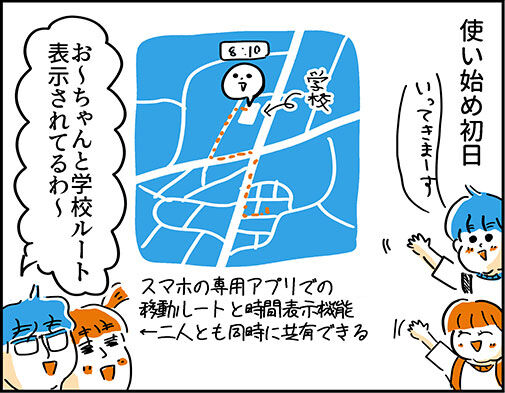 GPS機能で現在の居場所もみれるので放課後遊びにいったりヨージだけで買い物とかも安心できるな~。 ※上記地図は もちろん実際の地図とは変えて書いてます。