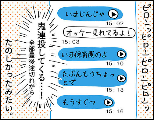 一回こっちから「見れてるよ!」ってメッセージ送ってるのに鬼連投してきた。